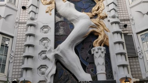 小田急の豪徳寺駅から明大前に向かって走り、甲州街道を右折し、和泉仲通り商栄会を北へ。この商店街は幡ヶ谷で働いていた頃に何度か通ったことがある。奇妙なくらい派手な建物が二軒あった。