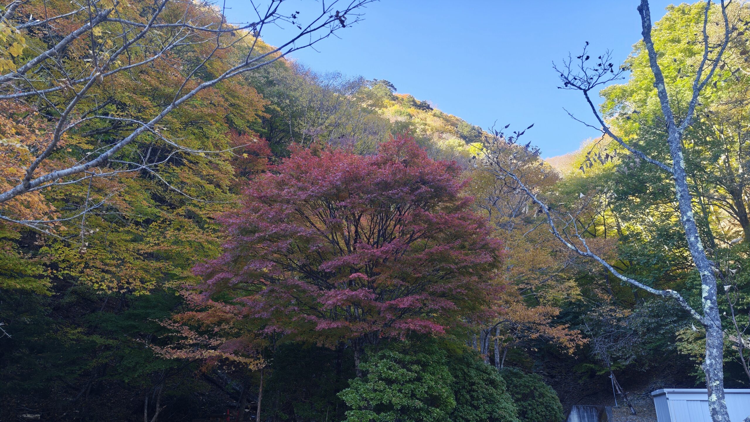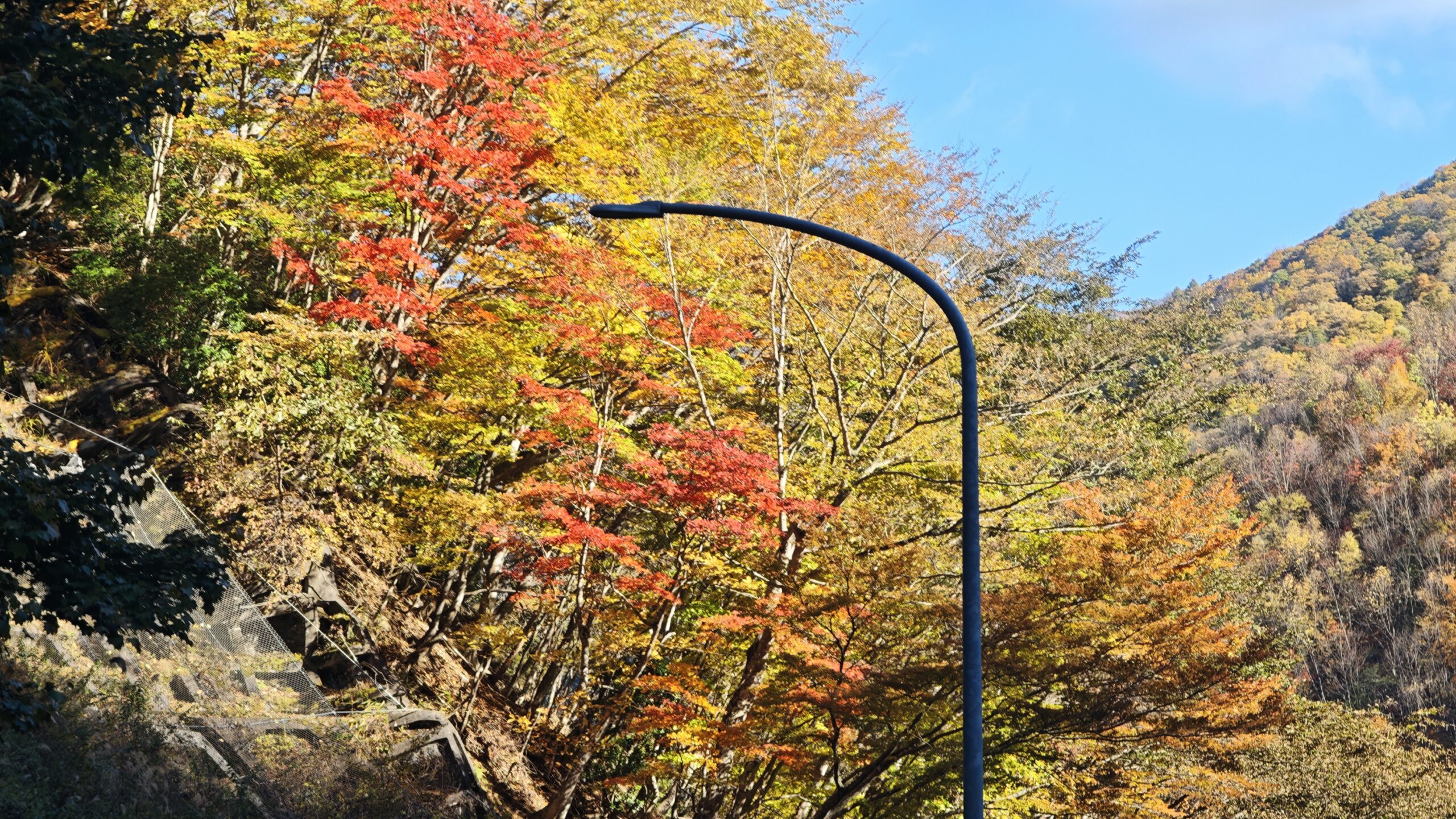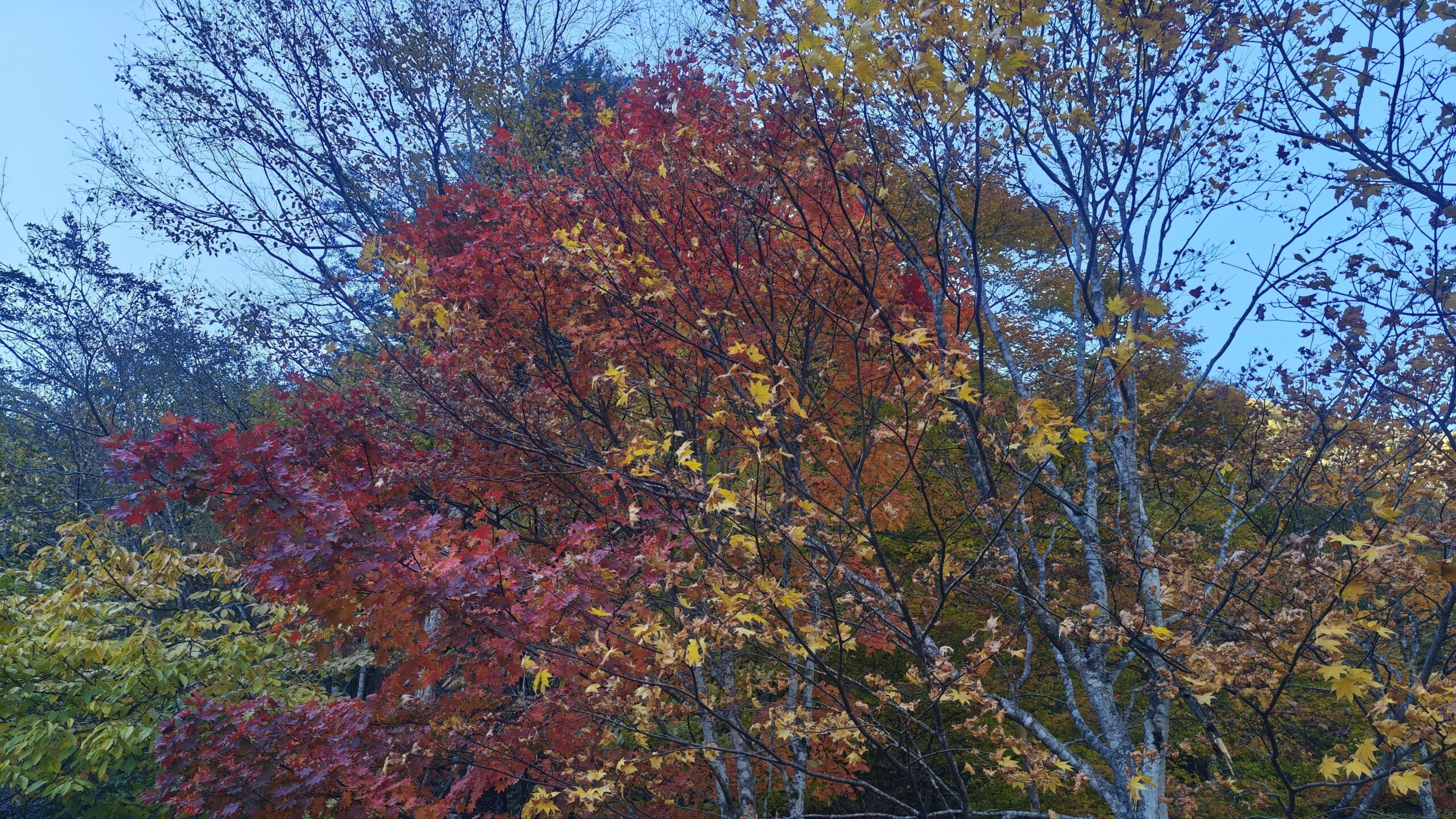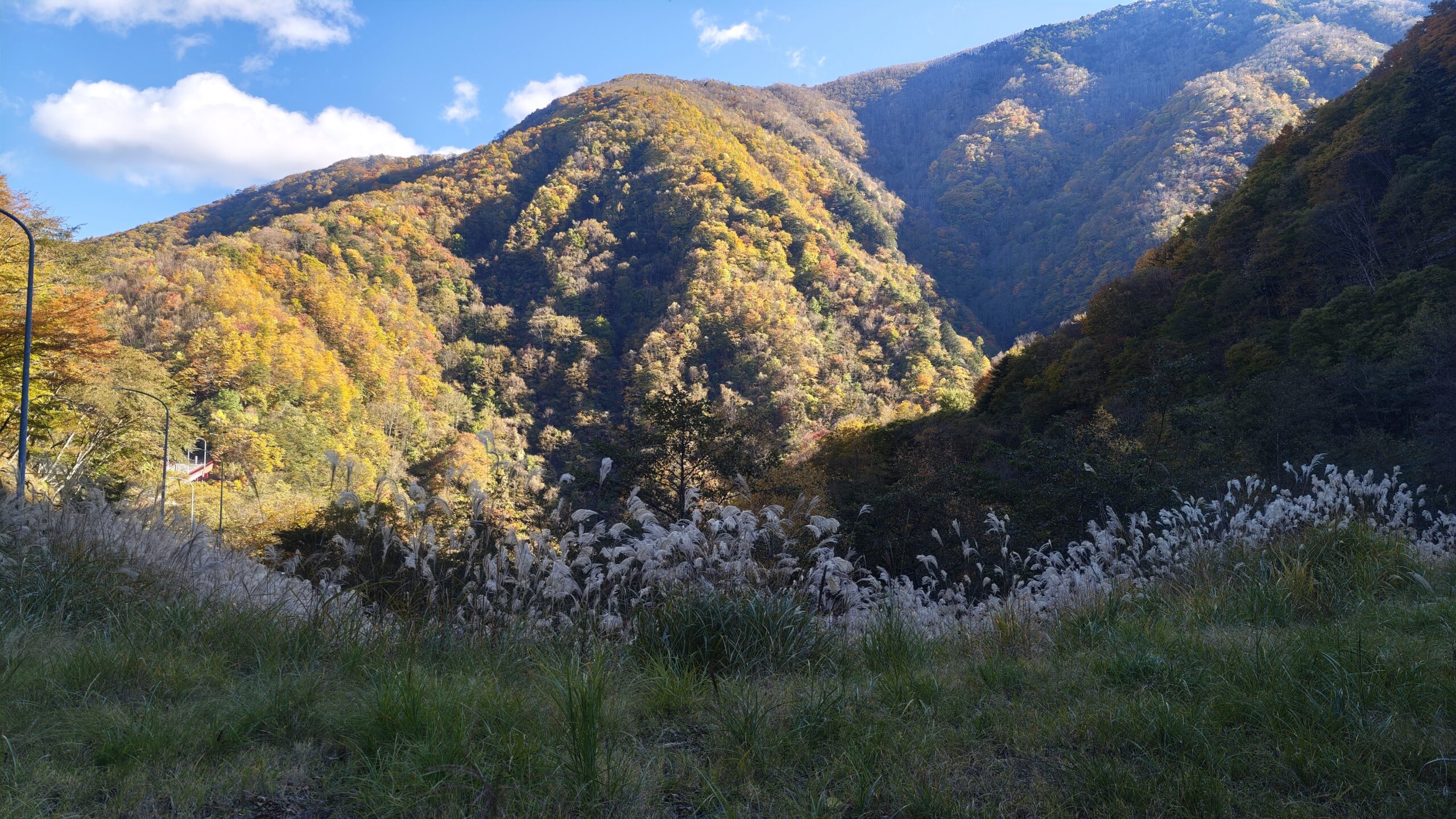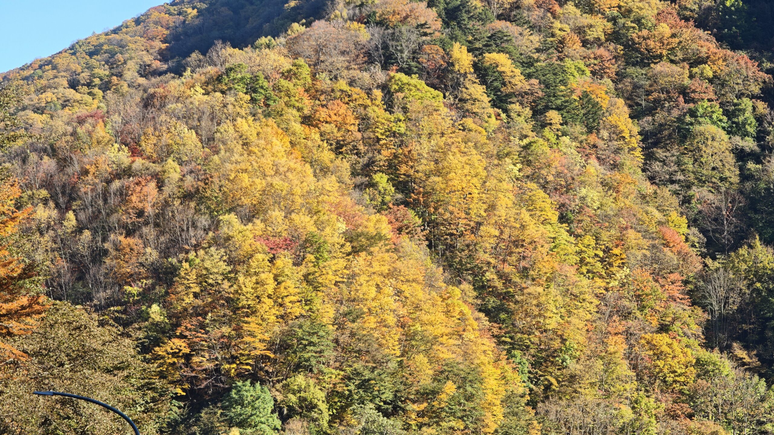 走りながら紅葉の様子を確認したが、やはり、11月上旬ではまだ早すぎたようだ。山の所々に赤くなった木が見えたが、紅葉の見頃というわけにはいかなかった。