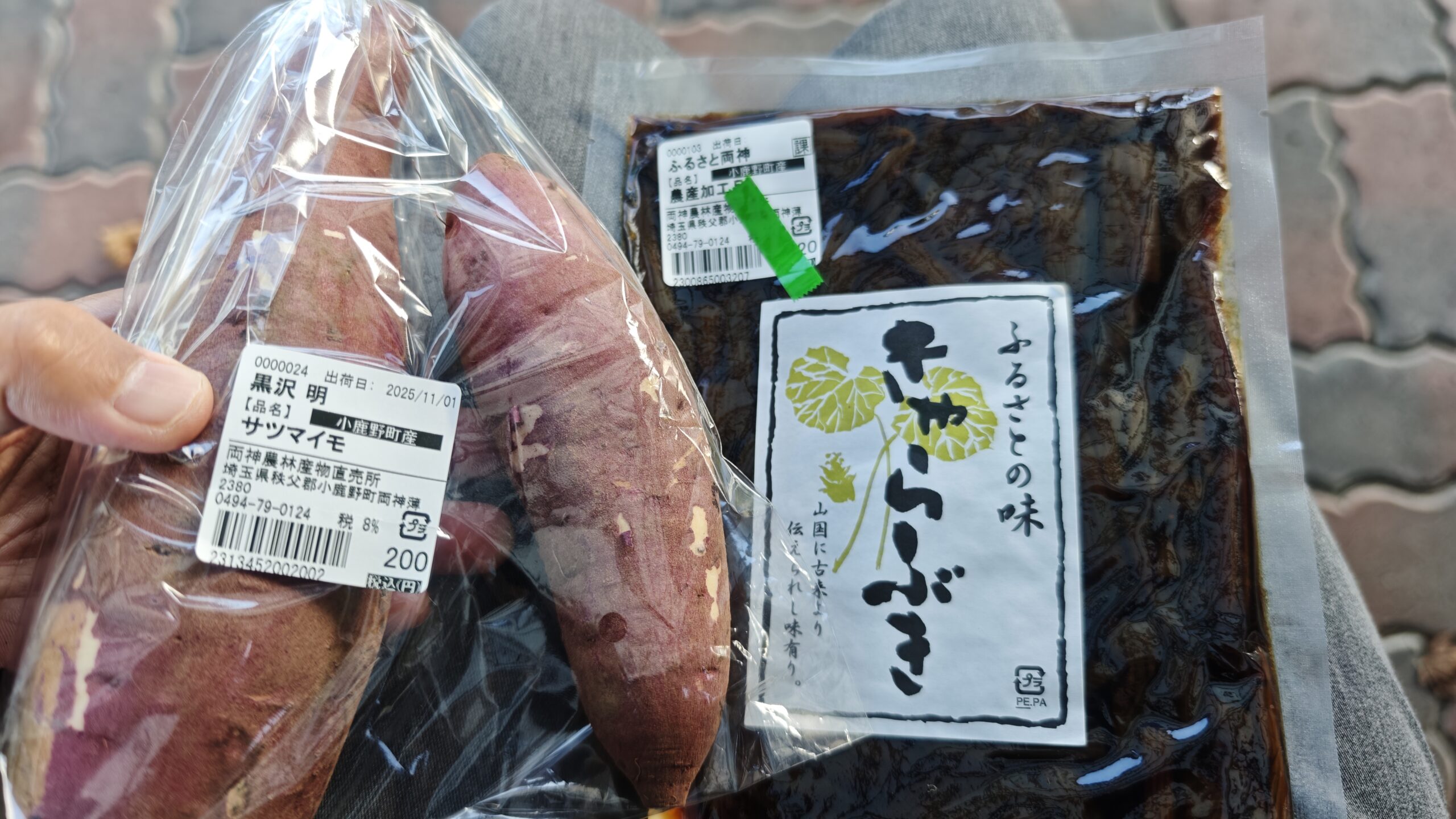 3時10分頃に道の駅に着いた。温泉に入る時間はなかったので、農産物の直販店で土産物を物色した。きゃらぶきとさつまいもを買った。さつまいもは、『七人の侍』の監督と同じ名前の生産者のものを買った。