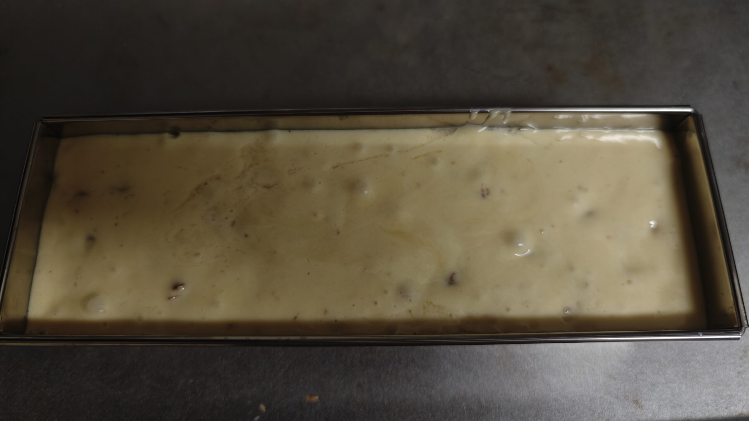 夜、味見してみると、ケーキが柔らかすぎて切り口が欠けてしまった。食感はきめ細かく、スポンジケーキみたいだった。