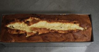 15分ほど焼いてからいったんオーブンをあけ、表面にナイフで縦に切り込みを入れた。焼き上がったとき、中心部が膨らんで裂け目ができ、パウンドケーキっぽくなっていた。170度で50分焼いたが、若干長いかもしれない。次回は45分にしてみようか。