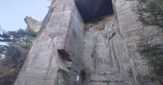 やがて、岸壁に巨大な観音像が彫ってあるところに着いた。百尺ということは、高さおよそ30メートルということだが、実際、かなりの高さがあった。鎌倉の大仏より間違いなく高かった。