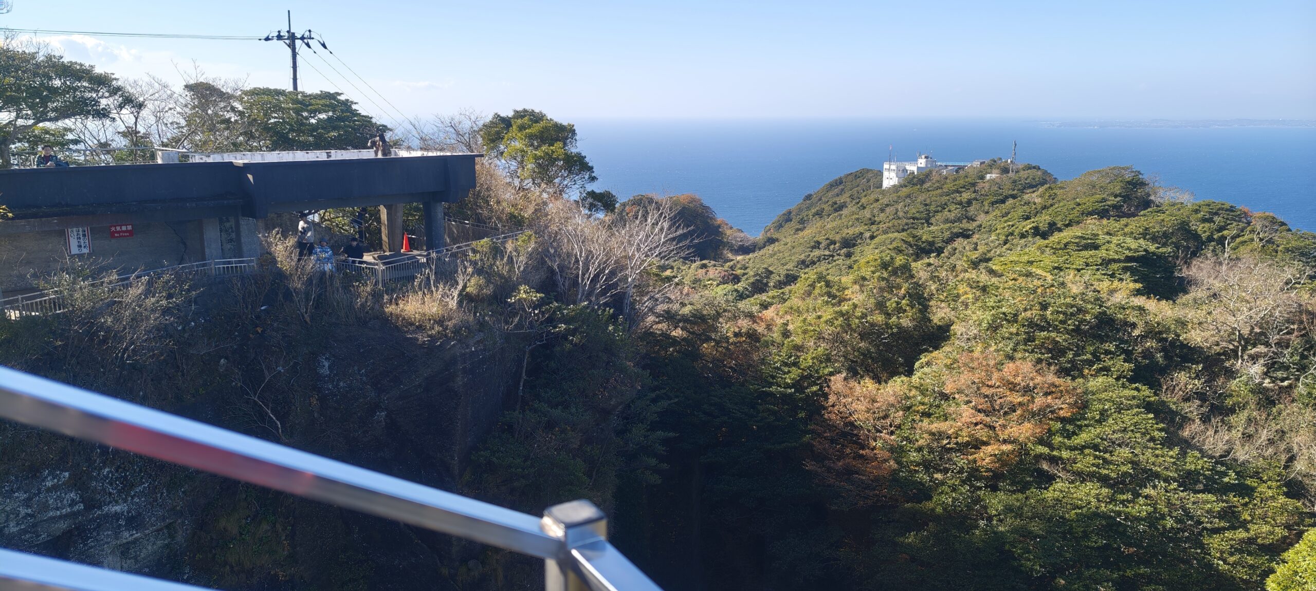 再びアクアラインで木更津に渡り、富津中央ICから海沿いに出て浜金谷方面に向かい、鋸山登山自動車道に入る。急勾配を上り、山頂のパーキングに車を止めた。