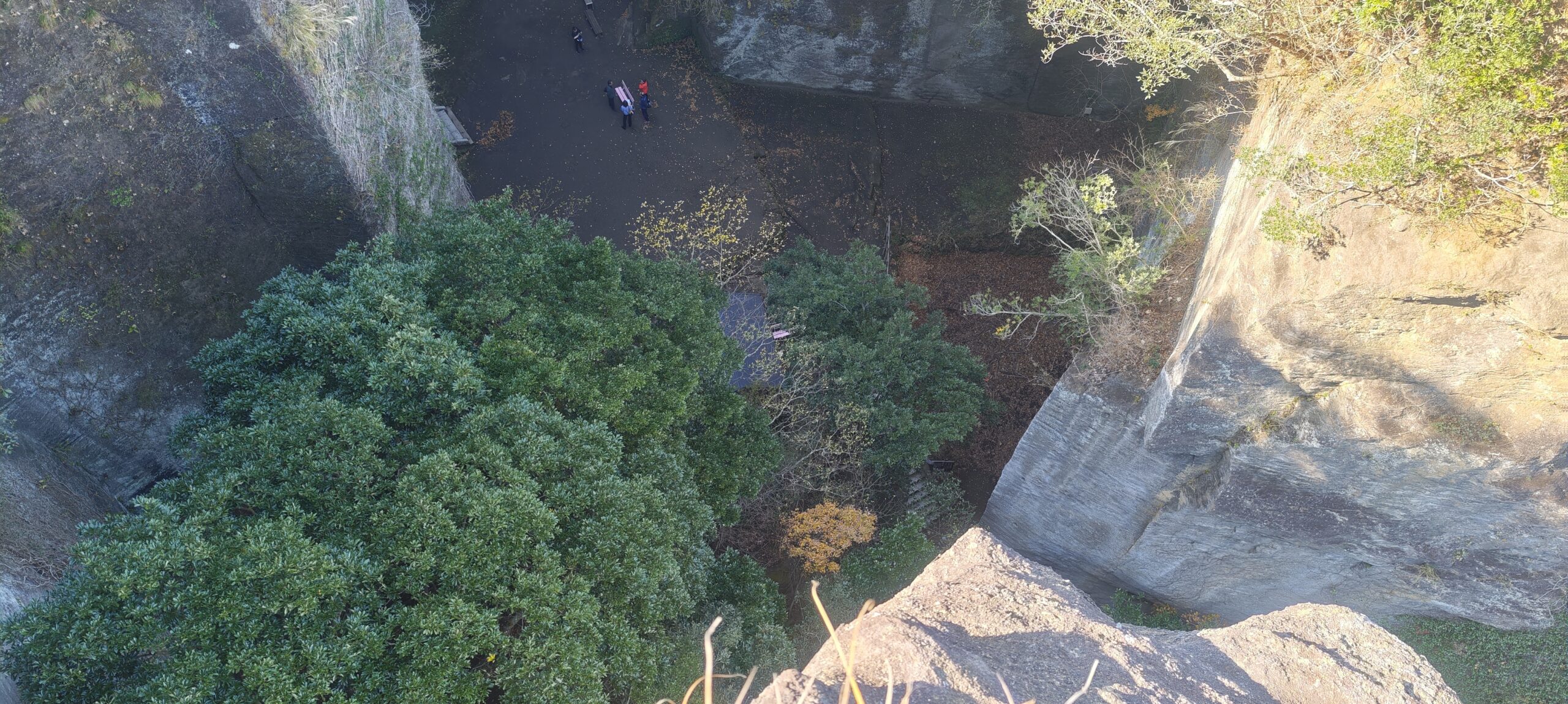 地獄めぐりから左を見ると展望台があり、下を見るとさきほど見てきた百尺観音の広場があった。