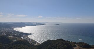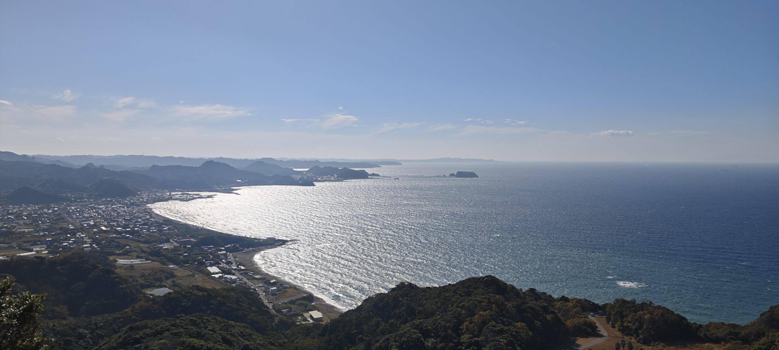 登山自動車道を下りる途中、見晴らしの良いところがあったので車を止めて写真を撮った。保田、安房勝山の海岸があり、小島の向こう側は岩井だろう。