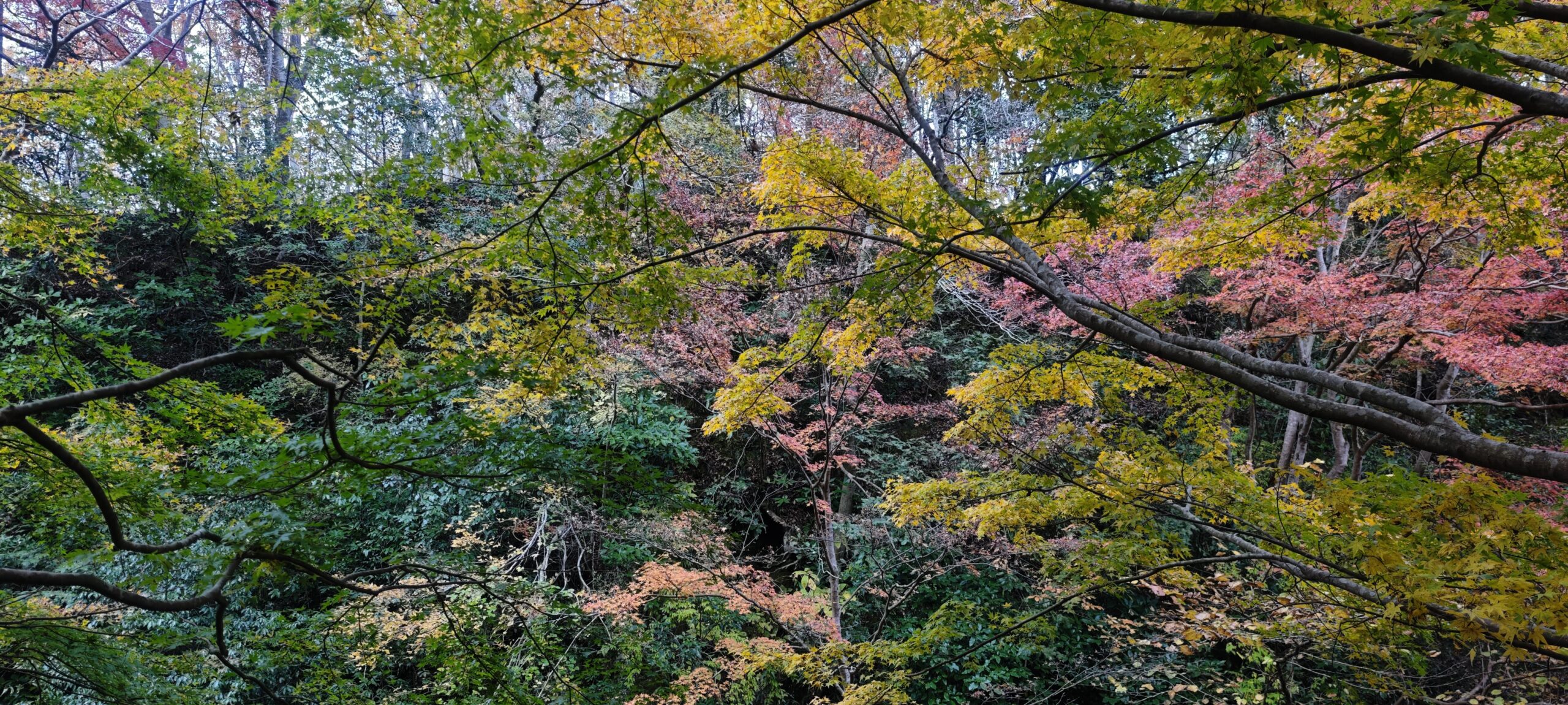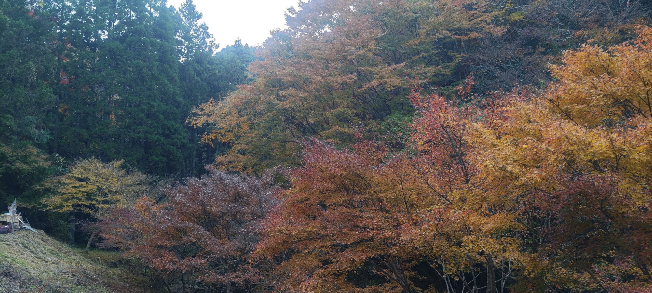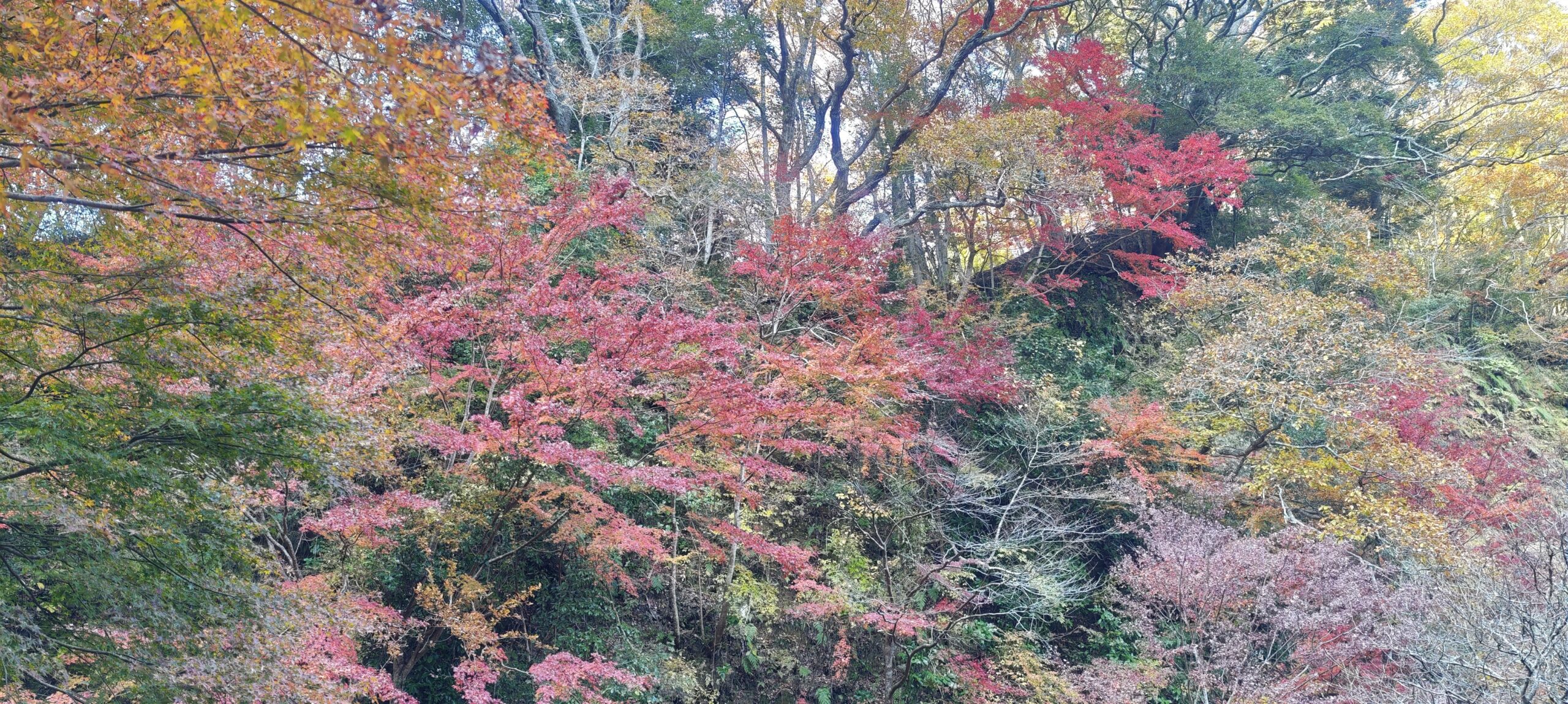 もみじロードの紅葉と違うのは、色とりどりであるところだった。植えられているのもあるだろうが、ひとかたまりではないため、赤一色、黄一色ではなかった。周囲は静かで、猪や猿が出てきてもまったくおかしくない。