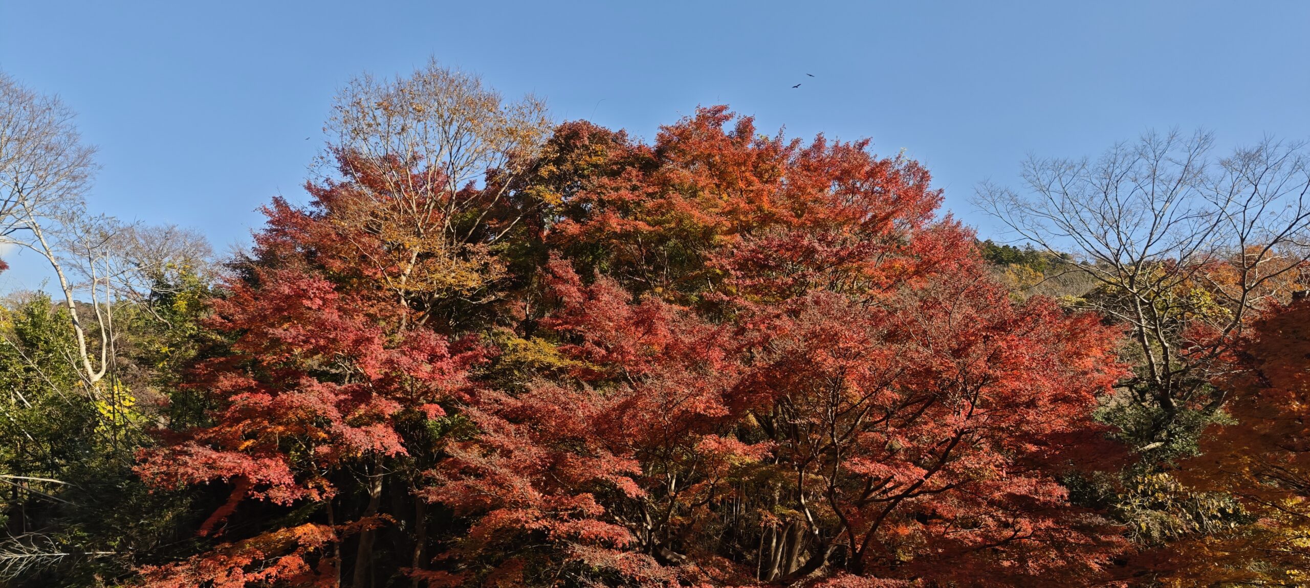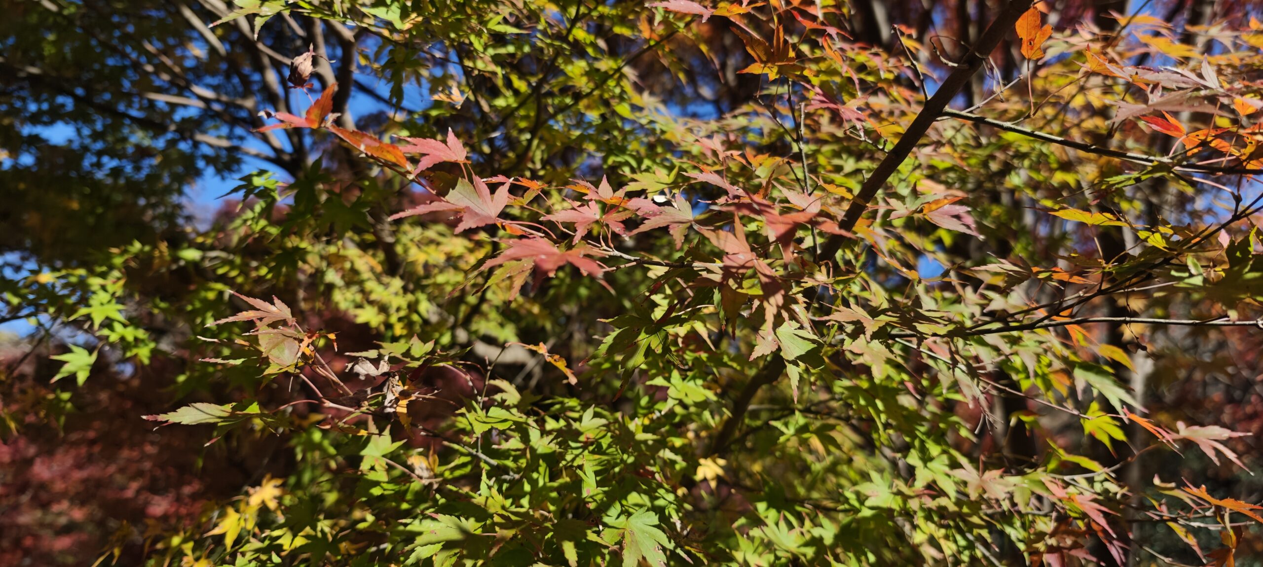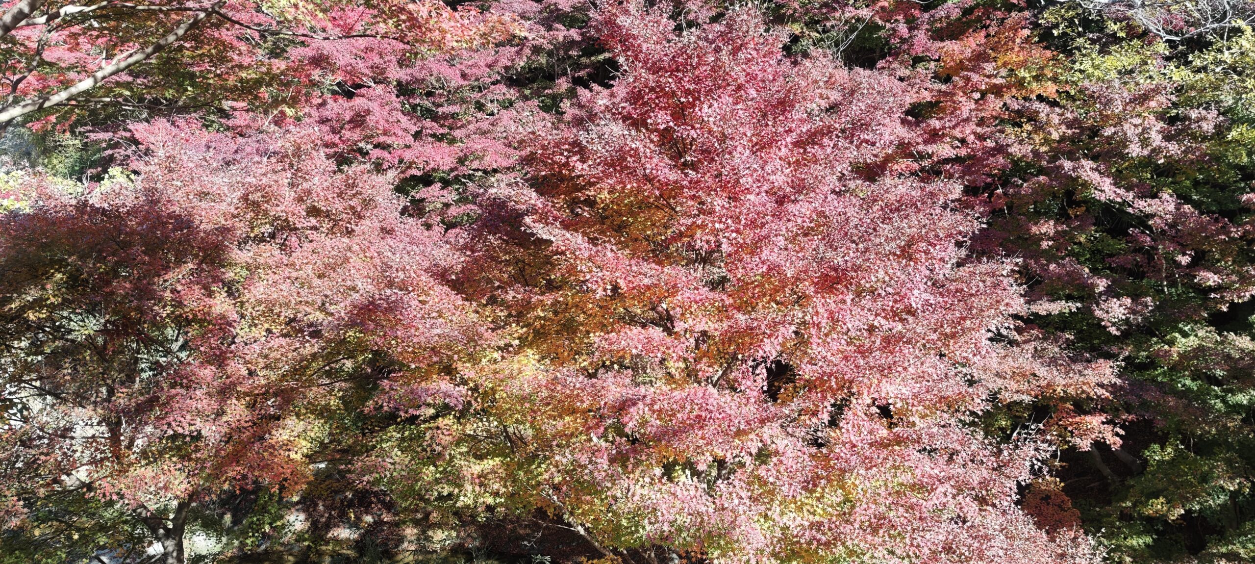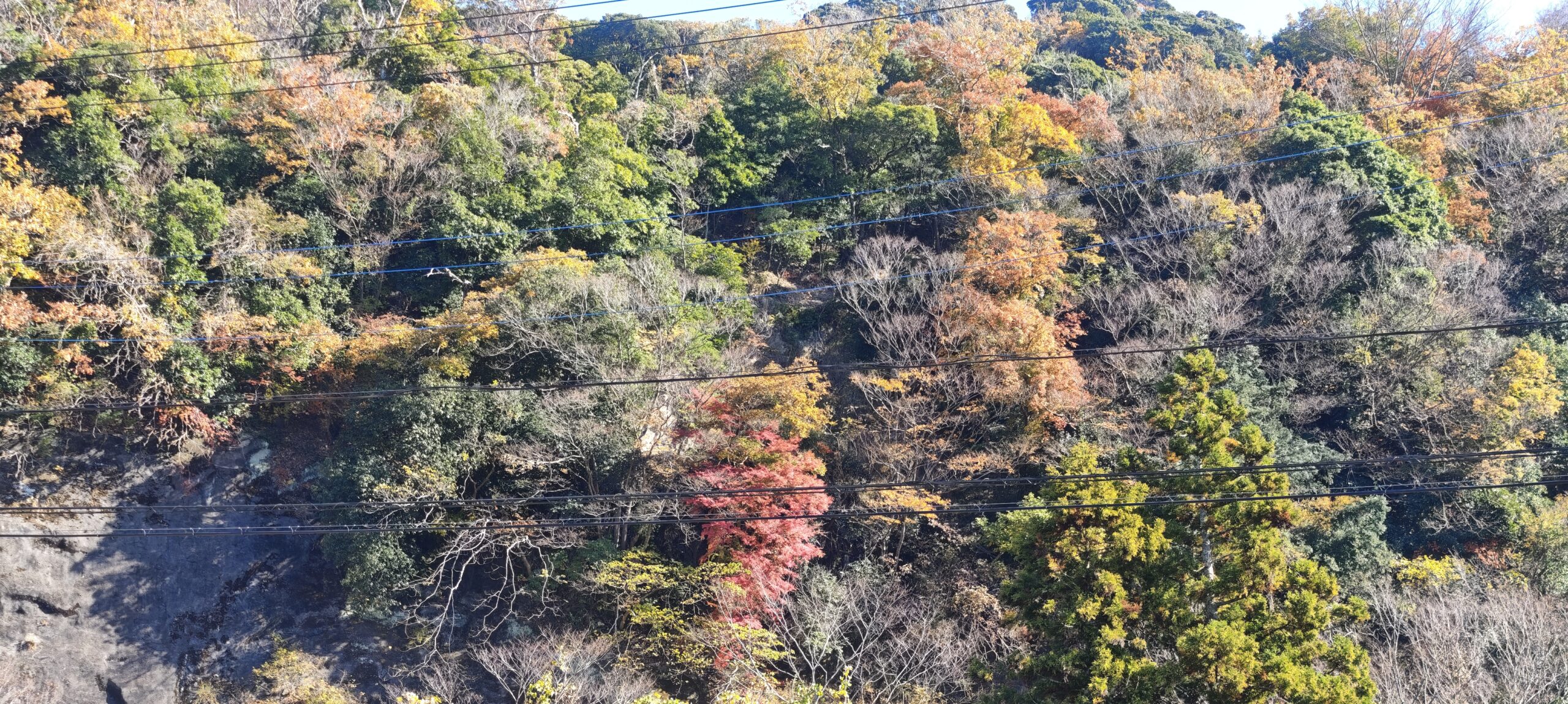 もみじロードの紅葉と違うのは、色とりどりであるところだった。植えられているのもあるだろうが、ひとかたまりではないため、赤一色、黄一色ではなかった。周囲は静かで、猪や猿が出てきてもまったくおかしくない。