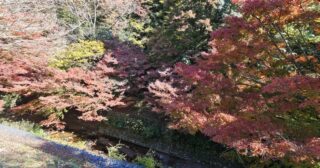 山中区公民館近くのパーキングに車を止めた。その辺りは志駒川沿いの紅葉が見事な眺めとなっていたので、川沿いを散策した。