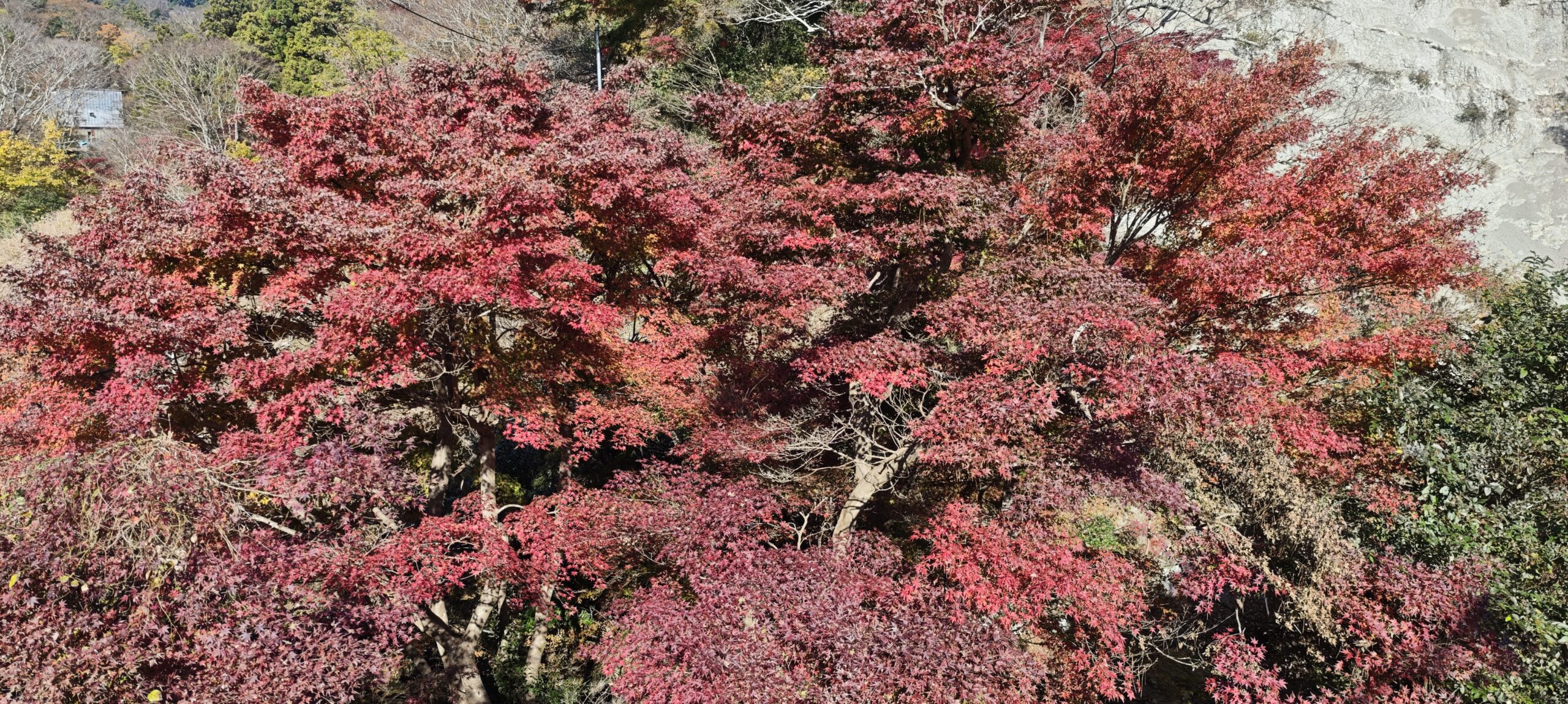粟又の滝周辺は混んでいた。橋の上から渓谷の写真を撮りたかったが、駐車場が埋まっていたので諦めた。別の駐車場に車を止め、道沿いの紅葉を写真に撮り、本日の紅葉めぐりの締めとした。