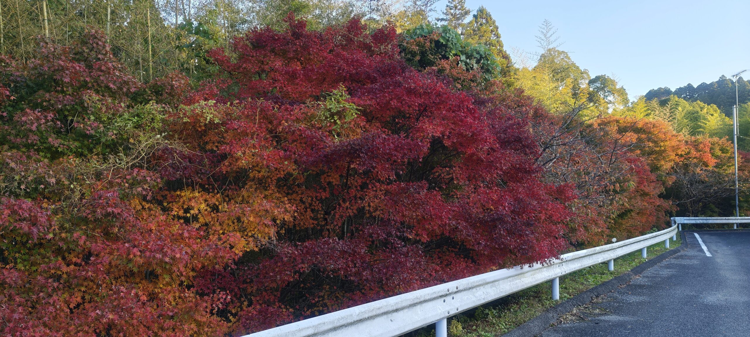 麓に下り、国道127号線を北に走り、上総湊の手前で右折した。しばらく山に向かって進んで、県道182号に入った。そこは、もみじロードと言われている道だった。