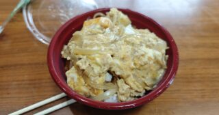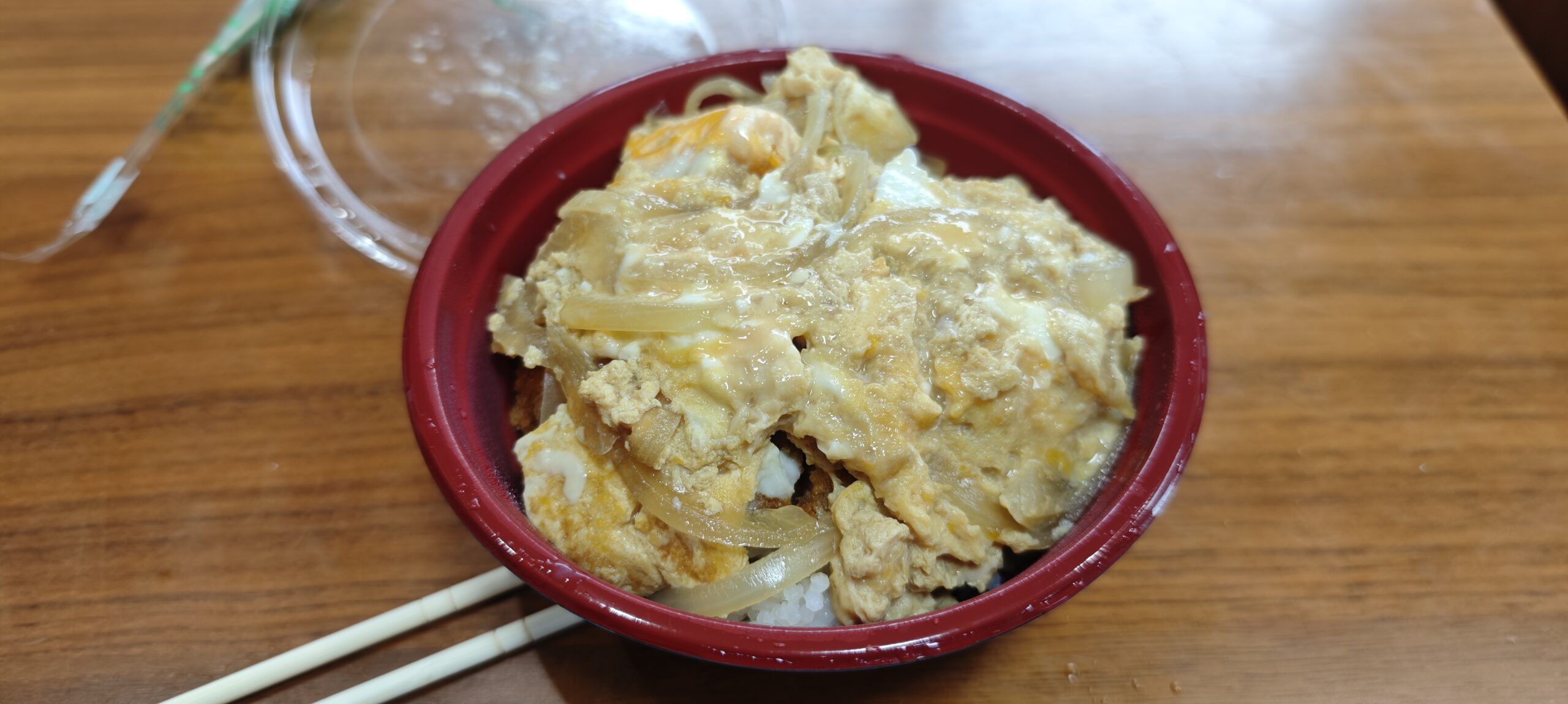 食堂に行くと、お昼のカツ丼がお弁当容器に入って並んでいた。時間がなかったら船で食べられるようにという配慮だった。しかし、思ったより順調に荷物をまとめられたので、ここで食べることにした。